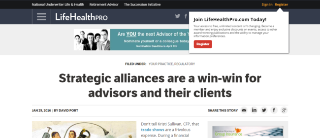 Who says competitors are bad for business? Not me! Here is an article where I’m quoted about the value of doing business WITH other financial advisors, not against them. http://www.lifehealthpro.com/2016/01/29/strategic-alliances-are-a-win-win-for-advisors-and Contact me at 303-324-0014 or kristi@sullivanfinancialplanning.com to talk about how I can help you achieve your financial goals. Stay Informed and Educated — Subscribe to the SFP Blog! Use…