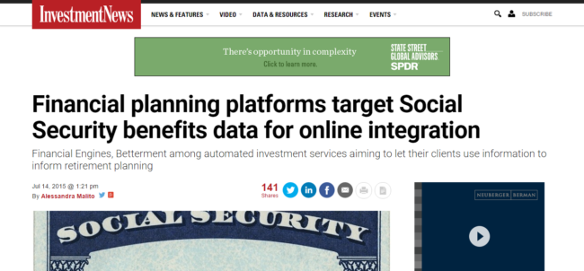 Recently I was quoted in Investment News about a proposal to integrate Social Security estimates into financial planning software. What a dream come true that would be! http://www.investmentnews.com/article/20150714/FREE/150719959/financial-planning-platforms-target-social-security-benefits-data Contact me at 303-324-0014 or kristi@sullivanfinancialplanning.com to talk about how I can help you achieve your Social Security. Stay Informed and Educated — Subscribe to the SFP Blog! Use the…